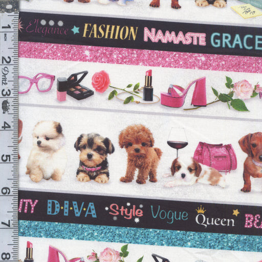 Henry GlassOriginal price $4.23 - Original price $4.23Original price$16.92 per yard$4.23 - $4.23Current price $16.92 per yard| /9.0 yards in stockDiva puppy border stripes on a white background.