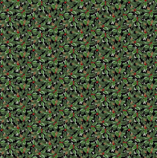 NorthcottOriginal price $4.59 - Original price $4.59Original price$18.36 per yard$4.59 - $4.59Current price $18.36 per yard| /4.0 yards in stockHolly leaves packed on a black background.