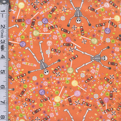 Figo FabricsOriginal price $4.42 - Original price $4.42Original price$17.68 per yard$4.42 - $4.42Current price $17.68 per yard| /2.75 yards in stockHalloween skeleton candies on an orange background.