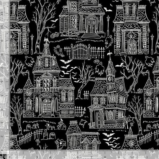 Timeless TreasuresOriginal price $4.23 - Original price $4.23Original price$16.92 per yard$4.23 - $4.23Current price $16.92 per yard| /3.75 yards in stockHaunted house toile on a black background.