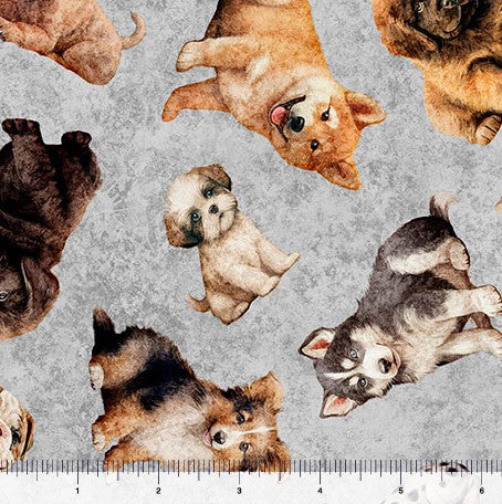 QT FabricsOriginal price $4.58 - Original price $4.58Original price$18.32 per yard$4.58 - $4.58Current price $18.32 per yard| /8.5 yards in stockPuppies tossed on a gray background.