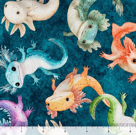 QT FabricsOriginal price $4.58 - Original price $4.58Original price$18.32 per yard$4.58 - $4.58Current price $18.32 per yard| /7.5 yards in stockAxolotls tossed on a teal blue background.