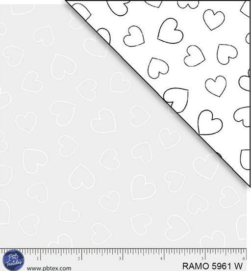 P&BOriginal price $3.53 - Original price $3.53Original price$14.12 per yard$3.53 - $3.53Current price $14.12 per yard| /3.0 yards in stockWhite on white solid hearts. Black & white corners shown for motif clarity.