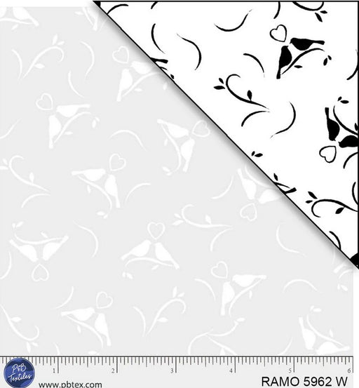 P&BOriginal price $3.53 - Original price $3.53Original price$14.12 per yard$3.53 - $3.53Current price $14.12 per yard| /2.0 yards in stockWhite on white love birds. Black & white corners shown for motif clarity.