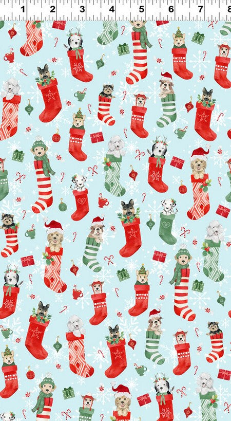 ClothworksOriginal price $4.23 - Original price $4.23Original price$16.92 per yard$4.23 - $4.23Current price $16.92 per yard| /4.75 yards in stockPets in Christmas stockings on a light blue background.
