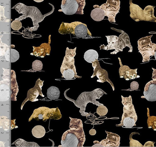 Timeless TreasuresOriginal price $4.16 - Original price $4.16Original price$16.64 per yard$4.16 - $4.16Current price $16.64 per yard| /10.75 yards in stockCats playing with balls of yarn on a black background.