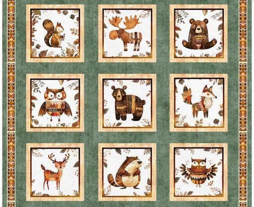 QT FabricsOriginal price $18.35 - Original price $18.35Original price$18.35$18.35 - $18.35Current price $18.35| /-8 in stockWoodland animal picture patches on a dark sage green background. 1 yard panel.
