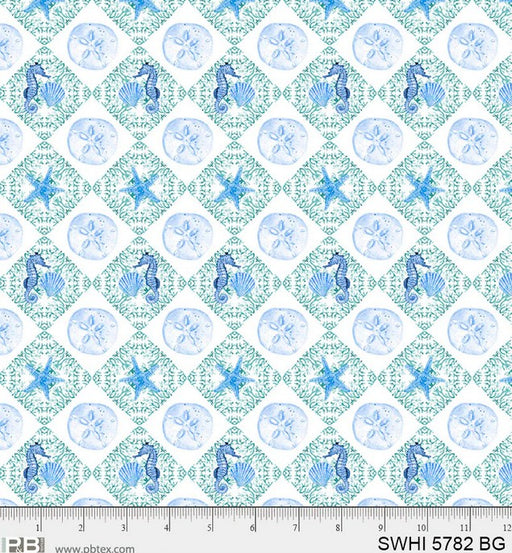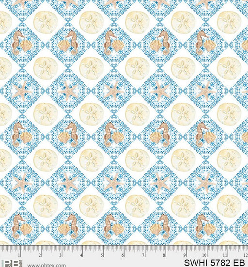 P&BOriginal price $4.23 - Original price $4.23Original price$16.92 per yard$4.23 - $4.23Current price $16.92 per yard| /6.25 yards in stockSand dollar diamonds & seahorses on a white/blue background.