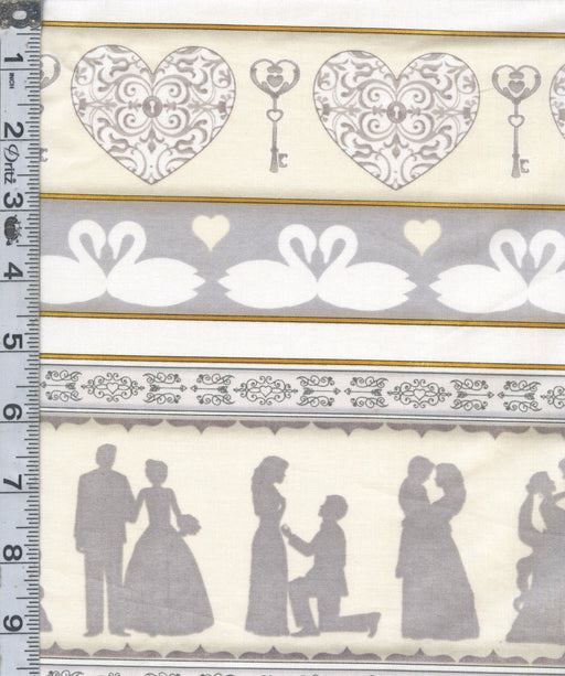 QT FabricsOriginal price $2.38 - Original price $2.38Original price$2.38$2.38 - $2.38Current price $2.38| /--2 in stockWedding novelty stripe on a cream/gray background.