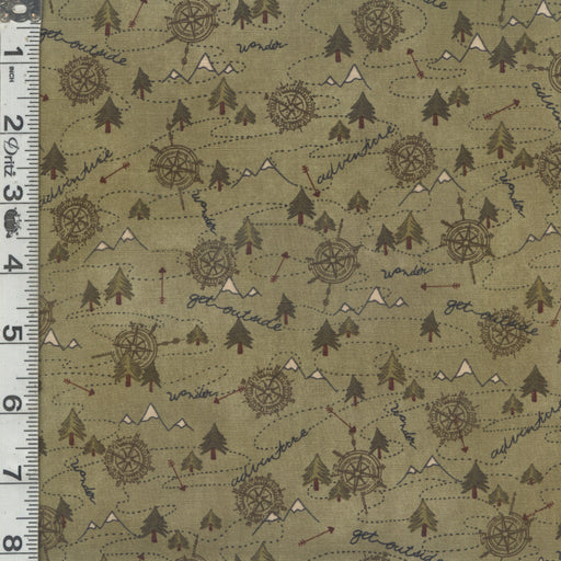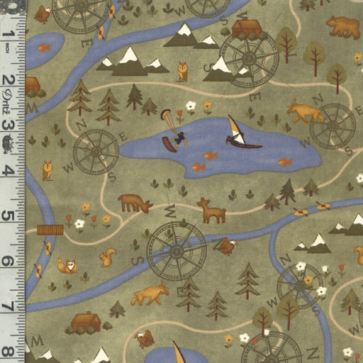 Henry GlassOriginal price $4.23 - Original price $4.23Original price$16.92 per yard$4.23 - $4.23Current price $16.92 per yard| /1.5 yards in stockWilderness mountain trail map on a green background.