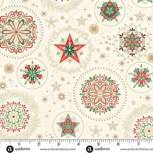 Makower UKOriginal price $4.23 - Original price $4.23Original price$16.92 per yard$4.23 - $4.23Current price $16.92 per yard| /5.25 yards in stockSnowflake mandalas with gold metallic on a cream background.