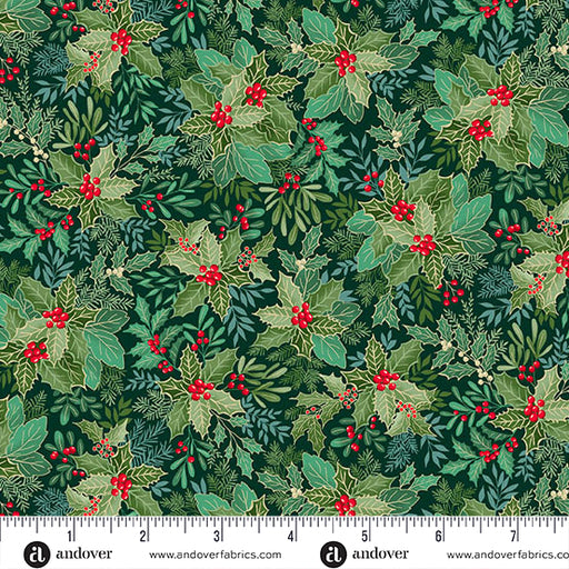 Makower UKOriginal price $4.23 - Original price $4.23Original price$16.92 per yard$4.23 - $4.23Current price $16.92 per yard| /7.0 yards in stockChristmas holly leaves with gold metallic on a green background.
