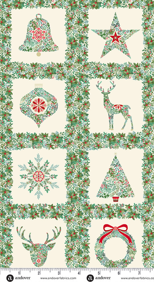 Makower UKOriginal price $4.23 - Original price $4.23Original price$16.92 per yard$4.23 - $4.23Current price $16.92 per yard| /10.5 yards in stockChristmas holly leaves with gold metallic on a cream background.