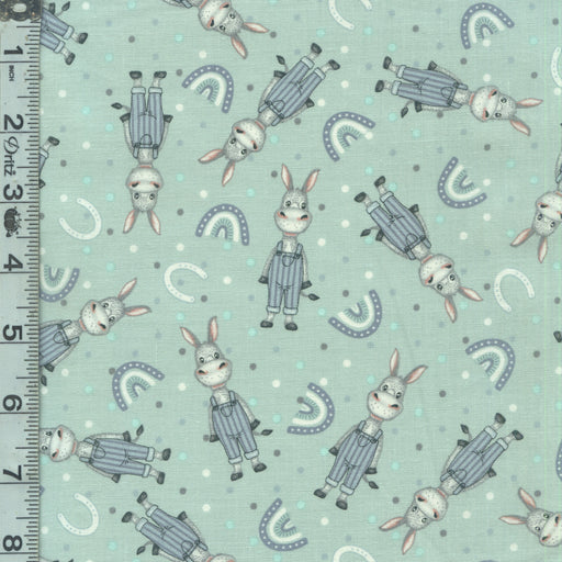 Little donkeys tossed on a light teal background.