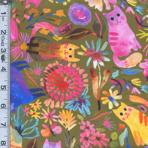 Robert KaufmanOriginal price $4.59 - Original price $4.59Original price$18.36 per yard$4.59 - $4.59Current price $18.36 per yard| /6.25 yards in stockCats & florals on an olive green background.