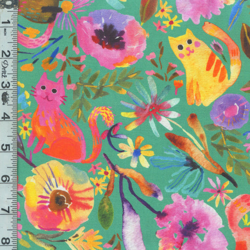 Robert KaufmanOriginal price $4.59 - Original price $4.59Original price$18.36 per yard$4.59 - $4.59Current price $18.36 per yard| /8.25 yards in stockCats & florals on a jade green background.