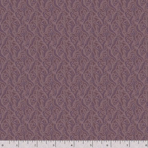Leaves, vines, & flowers on a mauve background.