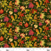 Autumn leaves tossed on a hunter green background.
