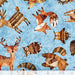 Woodland animals tossed on a sky blue background.