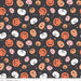 Jack o' lanterns tossed on a charcoal background.