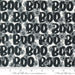 Boo text & flowers on a ghost background.