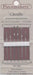 6 needles per package. Clean eyes, sharp, easy to thread, sturdy and strong. Similar in length to tapestry needles but with sharp points and a larger eye, this needle is used for tying quilts, crewel work, candlewicking, embroiderying with 3 or 5 Perle cotton and stitching on coarse materials.