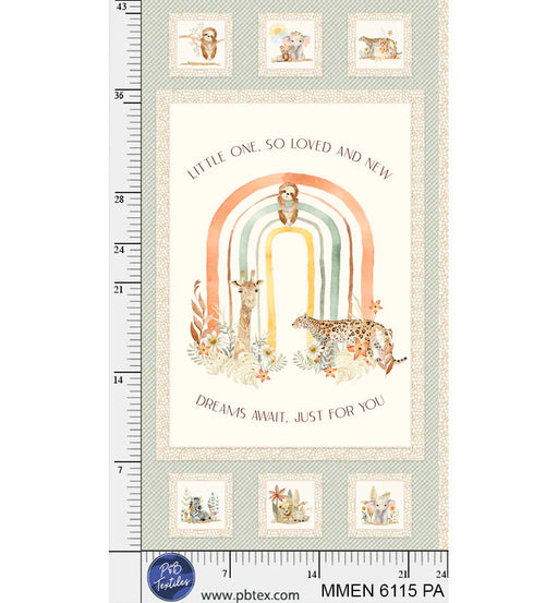 Jungle animal rainbow panel on a light blue background. 2/3 yard panel.