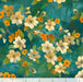 Dogwood floral & leaves on a jade green background.